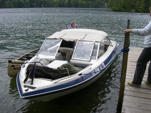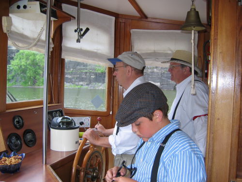 John at the helm of the Caprice for annual Scotia boat parade with help of his